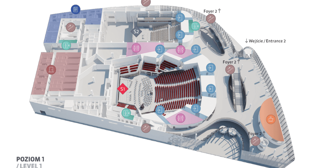 ICE Kraków jest budynkiem dostępnym dla wszystkich, w tym w szczególności z uwzględnieniem potrzeb osób mających problemy z poruszaniem się, osób z niepełnosprawnością, starszych, rodziców z wózkami.